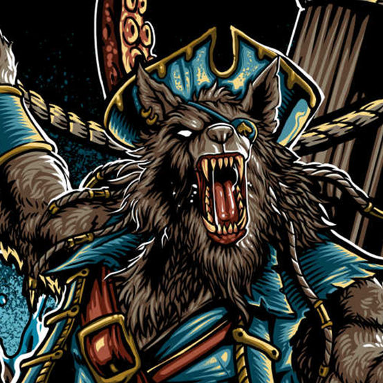 Mad Matt Design was commissioned to create the artwork for Trictac's first release in the overprint t-shirt industry in Thailand. The concept was to feature a pirate wolf as the protagonist in a story where he fights a giant octopus and discovers a treasure island. The artwork was created with intricate details and vibrant colors, with 12 colors as the output for screen printing on the t-shirts and packaging box. The end result was a striking and unique design that captures the adventurous spirit of Trictac's brand.